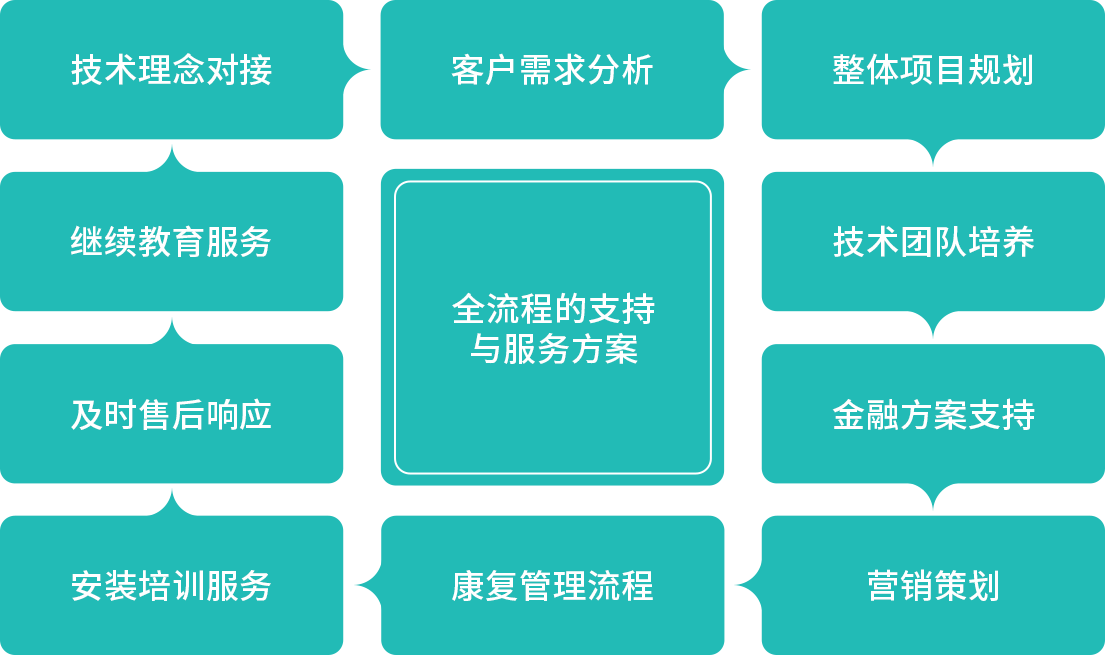 人是所有医疗服务的载体,人才是医疗机构最大的资产和竞争力,通过我们创新性的医生集团,我们向康复机构提供培训+项目咨询服务,包括组织诊断、人才评估、技术导入、班主任监督和检查、病例分析、学习成果传承、薪酬激励等服务来帮助管理者提升决策质量和效率,帮助组织提升诊疗能力、综合能力,构建以人才为本的学习型组织,帮助每个机构形成基于自己客户群体和商业模式的定制化特色技术体系,从而经营的更好!
